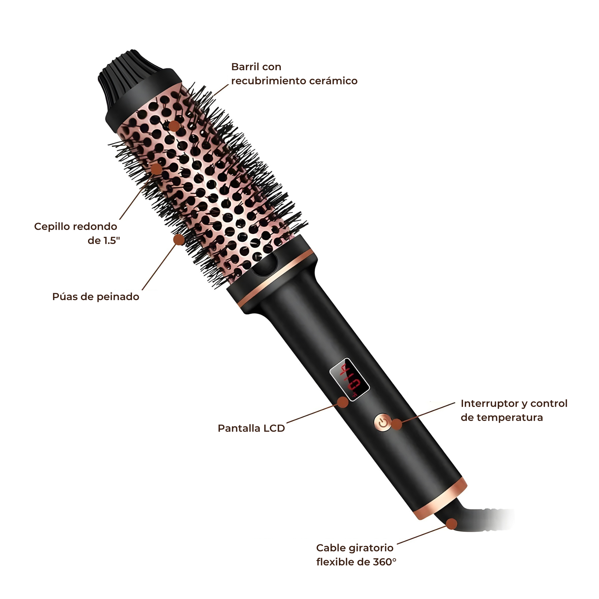 - Función 3 en 1: rizador + plancha + cepillo de volumen